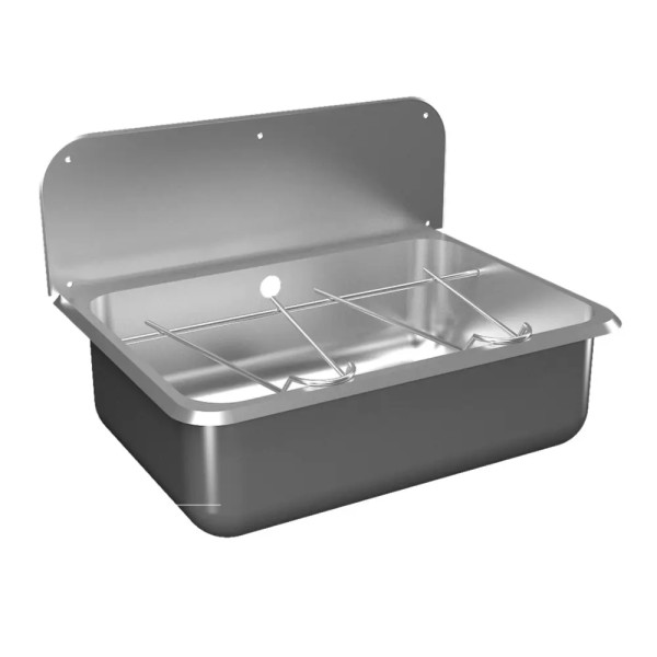Dieses Ausgussbecken im Format 57x40 cm bietet dank Rückwand, zuverlässigen Schutz vor Verunreinigungen durch Spritzwasser. Wie es der Name bereits verrät, wird es im Gegensatz zu normalen Waschbecken, hauptsächlich zum Abgießen von Schmutzwasser verwendet. Damit die Wandmontage schnell und einfach gelingt, sind im Lieferumfang Siphon und Befestigungsmaterial enthaltenen. Hergestellt wird das Ausgussbecken aus bakteriostatischem Edelstahl AISI-304 mit satinierter und pflegeleichter Oberfläche. Zur weiteren Ausstattung zählen ein Klapprost, der Ihnen das Befüllen von Gefäßen oder das Trocknen von Gegenständen erleichtert sowie ein Überlauf, der Ihre Räumlichkeiten vor Überschwemmungen schützt.