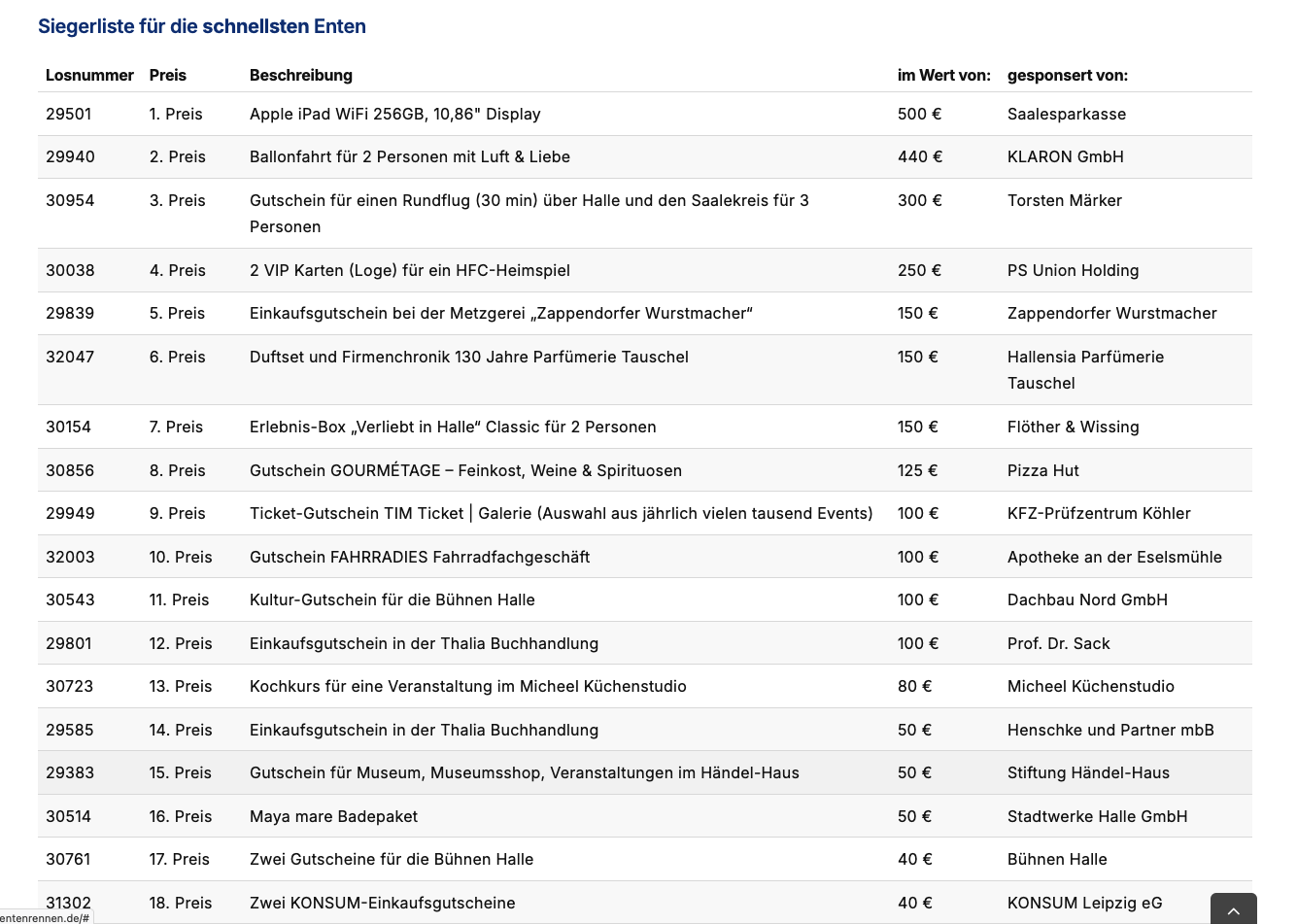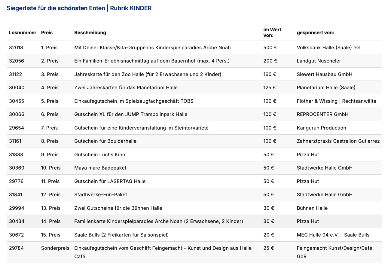 Die Fördervereine der Rotary Clubs Halle Georg Friedrich Händel und Halle/Saale veranstalten mit Unterstützung des Rotaract Clubs Halle das traditionelle Entenrennen zum Laternenfest.